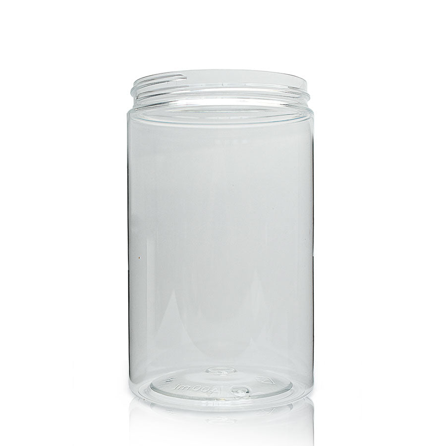 These 400ml Wide Neck Screw Top Jars Wholesale have a 70mm neck, which is compatible with our black screw lids. The clear PET plastic of this jar offers a light, shatterproof alternative to glass jars.